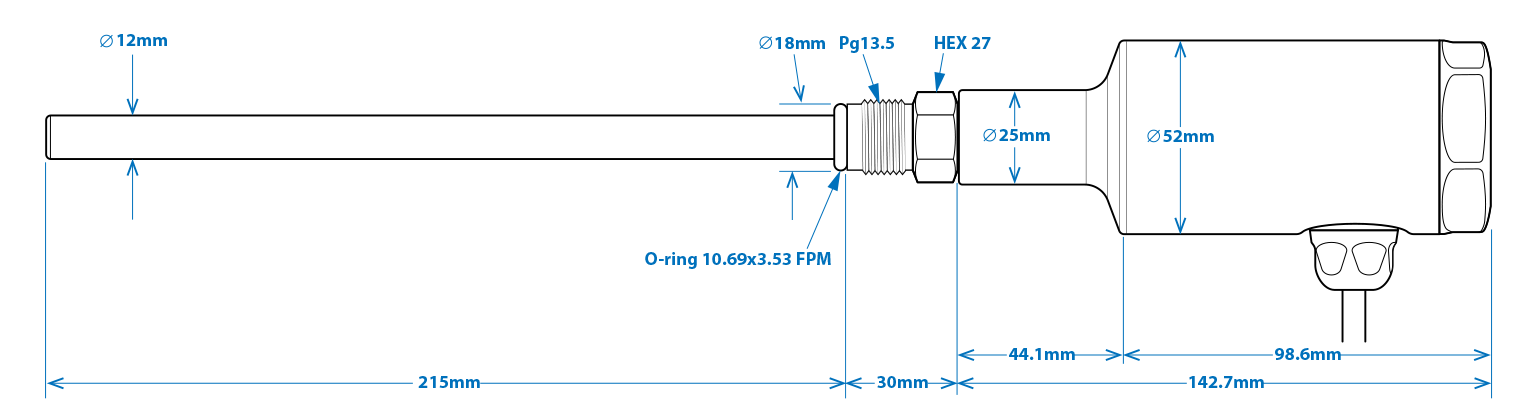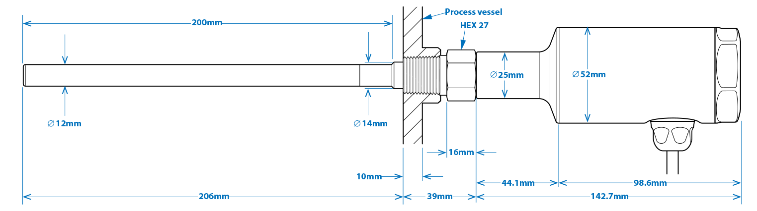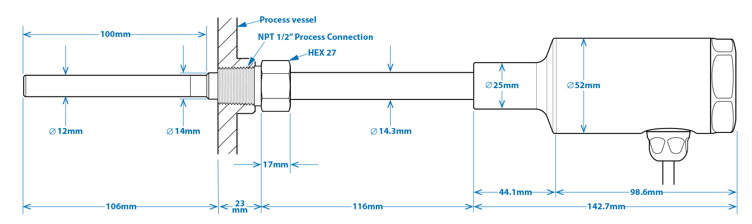 - NPT 1/2”, delivery includes 316L weld ferrule (OD=25 mm, l=30 mm)